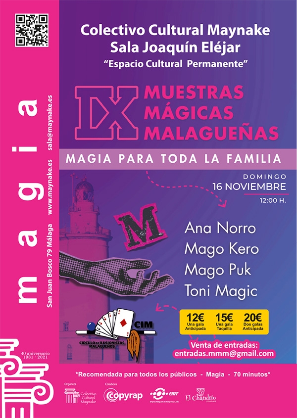 Elenco de Artistas Magia para toda la familia. (lX Muestras Mágicas Malagueñas) En su novena edición, las M.M.M. contarán con varios socios del Círculo de Ilusionistas Malagueños:
